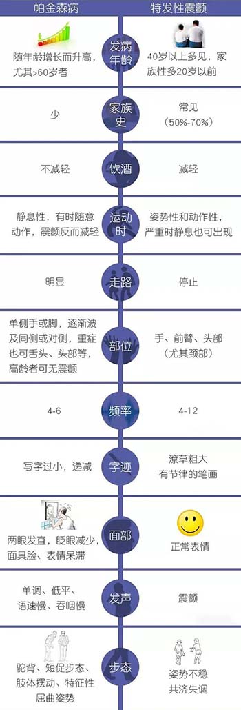 看文字太累?下面一图帮你区分帕金森病与特发性震颤,以后再也不会傻傻分不清: