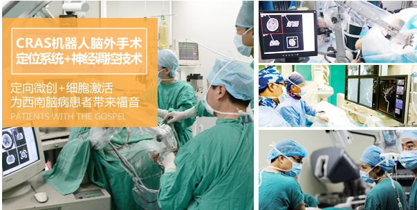 医院坚持以微创为特色、以科技为导向,专注于脑部疾病的研究与治疗。该技术的引进,开创了西南地区脑病微创治疗的新时代,了传统疗法的桎梏。借助机器人手臂的高性及高稳定性将之移植到患者已经受损的脑部病灶区,修复受损脑部神经细胞,使之变得完好无缺,不仅治疗了脑病,且还让患者到了接近正常人的水平。
